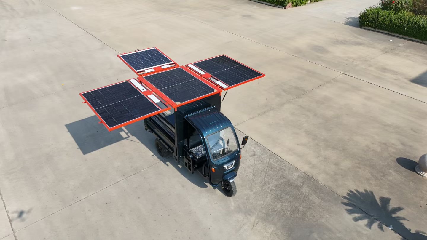 Super Trike cargo with integrated solar panels for off-grid productivity and services.